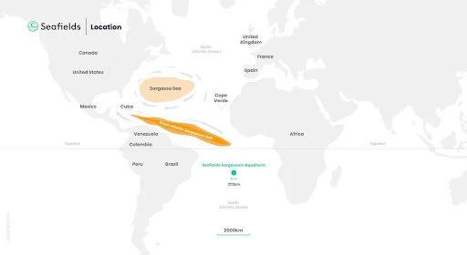 Seafields will permanently sequester CO2 in the deep ocean (additional carbon removal) and help decarbonize the chemical industry (avoided emissions) while restoring our oceans' productivity and increasing biodiversity. Our approach consists of aquafarming sargassum seaweed in the open ocean (Atlantic), processing its biomass to extract nutrients and fossil fuel replacing products, followed by baling and sinking the carbon-rich residual to the deep abyssal plain.